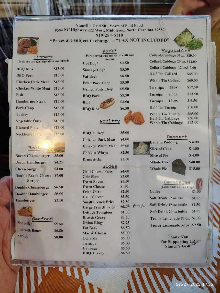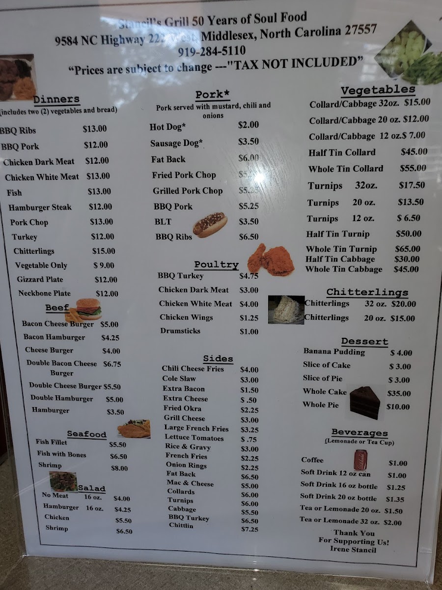 The menu at Stancil’s Lounge reflects a straightforward, comforting approach to classic Southern dining. Here, you’ll find familiar, satisfying dishes served in generous portions—perfect for a relaxed lunch or a hearty dinner with friends and family. The selection balances homemade sides with well-loved entrees, creating a warm, down-to-earth dining experience.